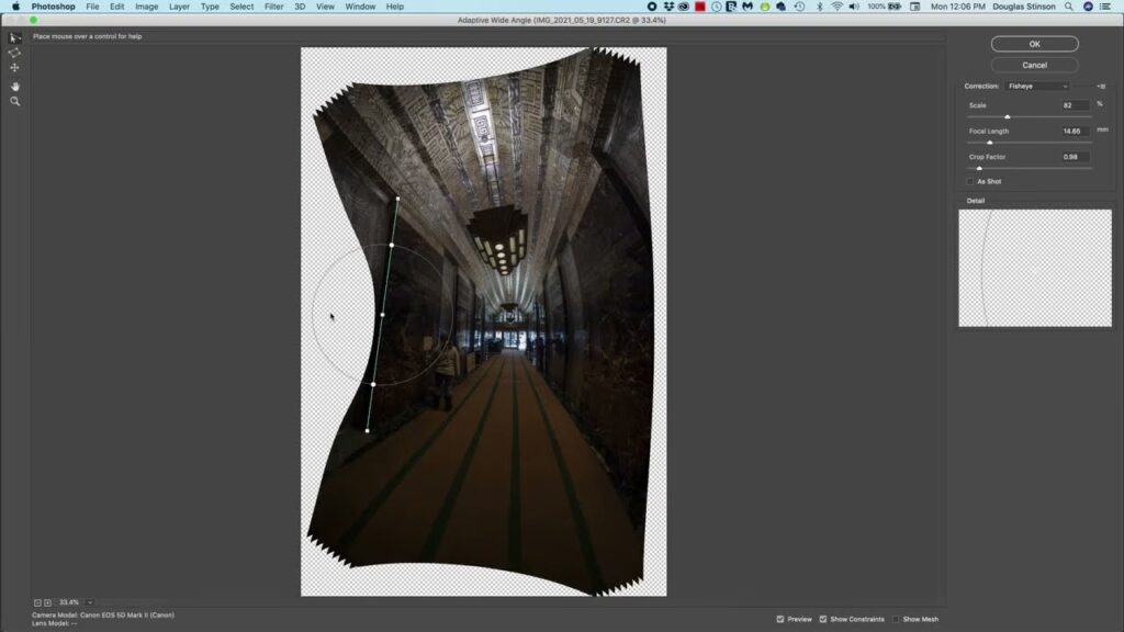 At forstå årsagen hjælper med at forudse, hvornår korrektion kan være nødvendig, og hvorfor værktøjerne i Photoshop er designet, som de er. De er skabt til at 'strække' eller 'komprimere' forskellige dele af billedet for at bringe linjer tilbage til deres tilsigtede parallelitet.