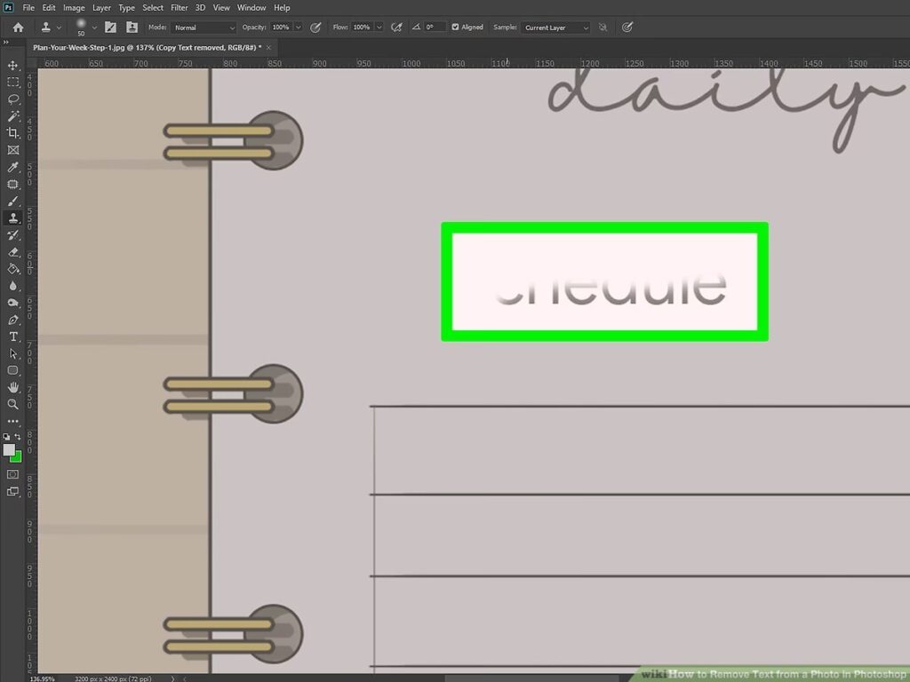 Hvis dit mål er at fjerne teksten *helt*, skal du slette selve tekstlaget. Tekstlag er ligesom alle andre lag i Photoshop og kan håndteres via Lagpanelet (Layers Panel).