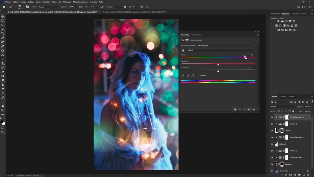 Som nævnt tidligere, mens Photoshop er et branchestandard værktøj med uovertrufne muligheder, er det også komplekst. At tilføje realistiske lyseffekter i Photoshop involverer ofte arbejde med lag, blandingsmetoder, masker og avancerede justeringer. For eksempel, hvis du tilføjer en lyskilde i Photoshop, skal du overveje, hvordan lyset påvirker forskellige overflader i billedet – hvordan det reflekteres i tøj, hud eller smykker. At male lys på realistisk vis kræver en god forståelse af lysets fysik og kan være en udfordring, selv for erfarne brugere.