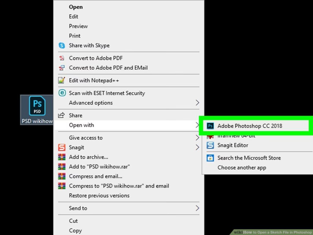 Begynd med at trække din scannede tegning ind i Photoshop-programmet. Du kan enten højreklikke på billedet og vælge Åbn med > Adobe Photoshop, eller trække billedet oven på Photoshop-ikonet på dit skrivebord eller din værktøjslinje. Dette åbner et nyt dokument med dit scannede billede.