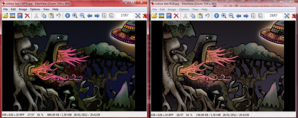 - CMYK har en mindre gamut end RGB.