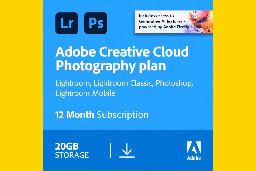 Ud over softwaren inkluderer planen typisk også cloud-lagerplads (standard er 20 GB, men 1 TB er en populær opgradering) og adgang til mobile versioner af Lightroom og Photoshop Mix/Fix.