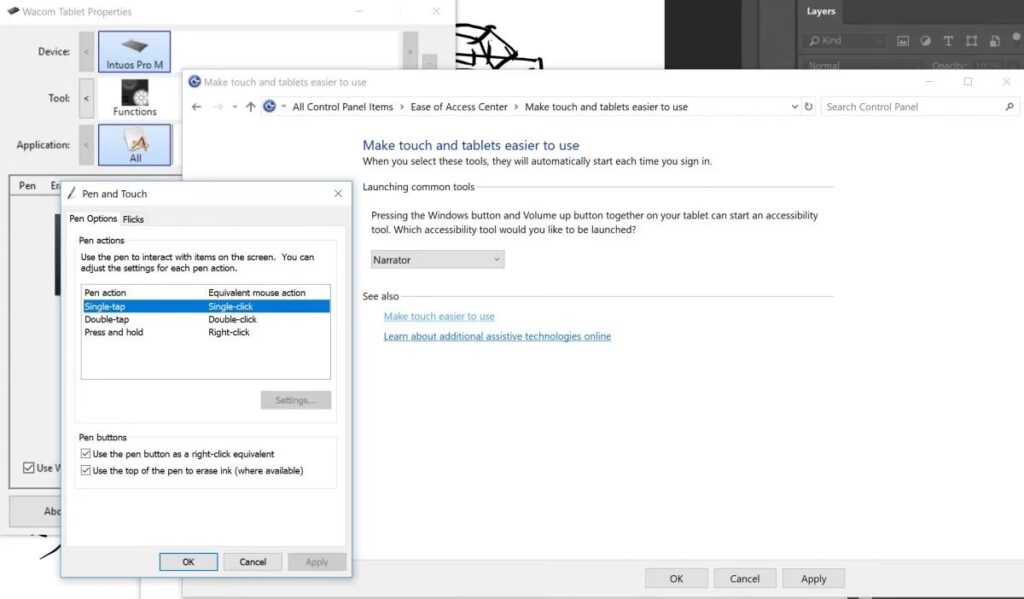 Denne funktion er ikke en Wacom indstilling, men en del af selve Windows' tablet- og pen-input system. Derfor skal den deaktiveres i Windows' kontrolpanel. Det er en hurtig justering, der markant kan forbedre din tegne- og redigeringsoplevelse.