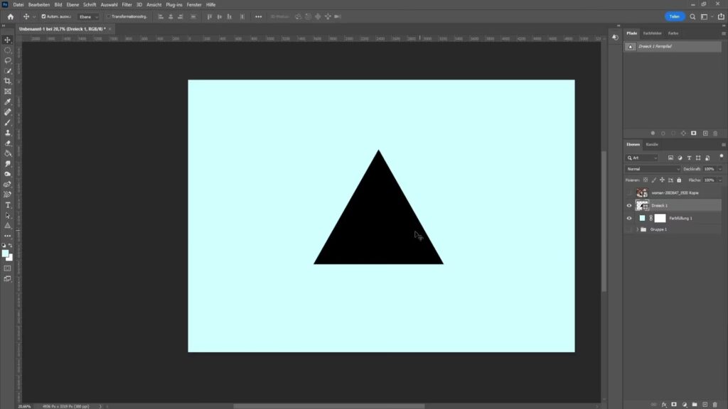Dette sker typisk, hvis du ved et uheld har valgt 'Pixels' i stedet for 'Form' i indstillingslinjen, da du tegnede trekanten. Pixelbaserede former er ikke skalerbare på samme måde som vektorformer. For at bevare skarpheden, især hvis du planlægger at skalere formen, skal du altid tegne former som 'Form' lag.