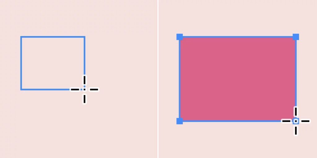 Du tegner rektanglet ved at trække diagonalt på lærredet.