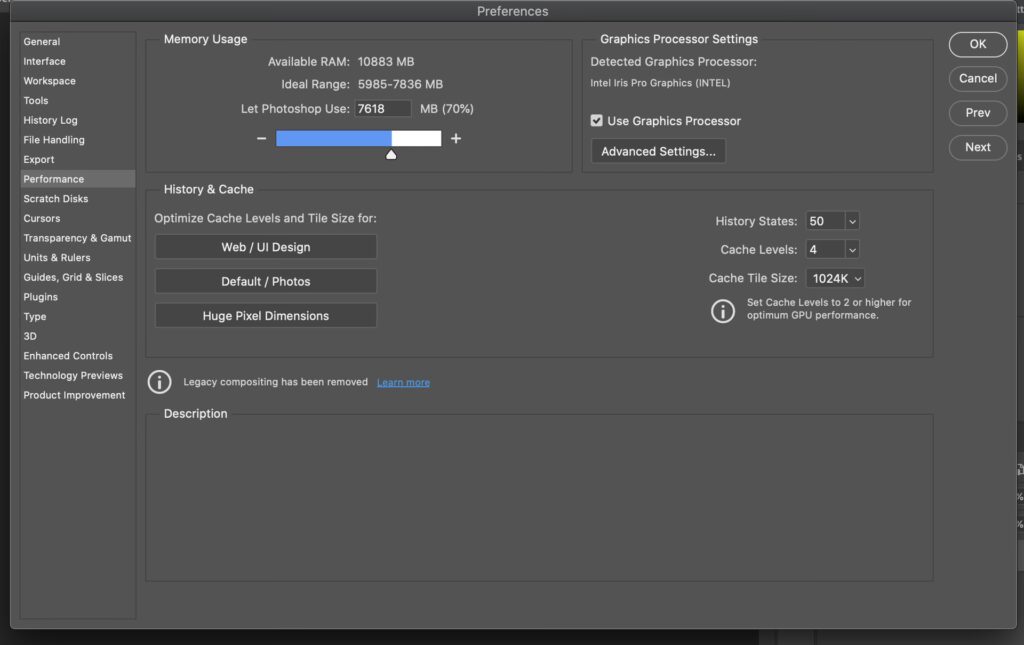Dyk ned i Photoshops Indstillinger for Ydeevne