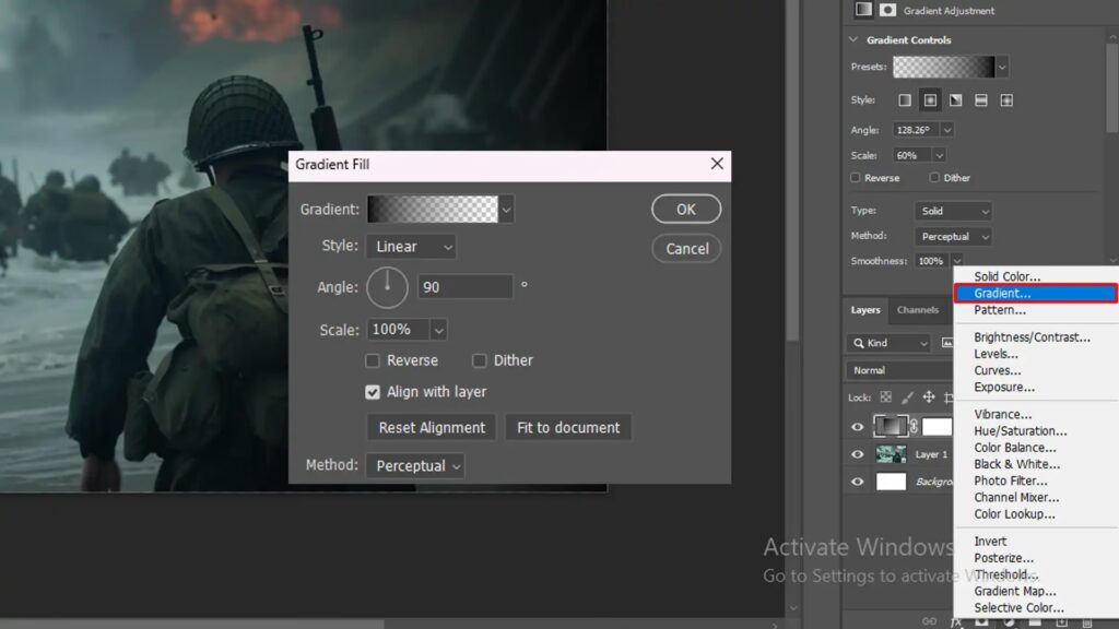 - Mørklæg Hele Billedet Midlertidigt: Når justeringslaget er oprettet, åbnes dets egenskaber. For et Kurve-lag, klik på midten af kurven og træk den lidt nedad. Dette vil mørklægge hele billedet. Bare rolig, dette er kun midlertidigt for at se effekten af justeringslaget. For et Niveauer-lag, træk den midterste grå skyder mod højre.