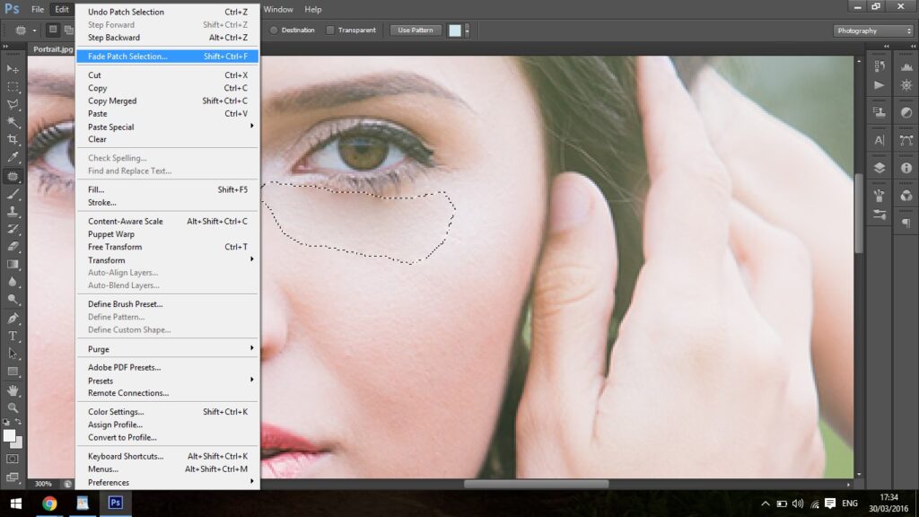 | Patch Tool | Frit valg, manuel kilde (træk markering) | Større områder, objekter, hudretouchering, hvor form og tekstur er vigtig | Høj (manuel) |