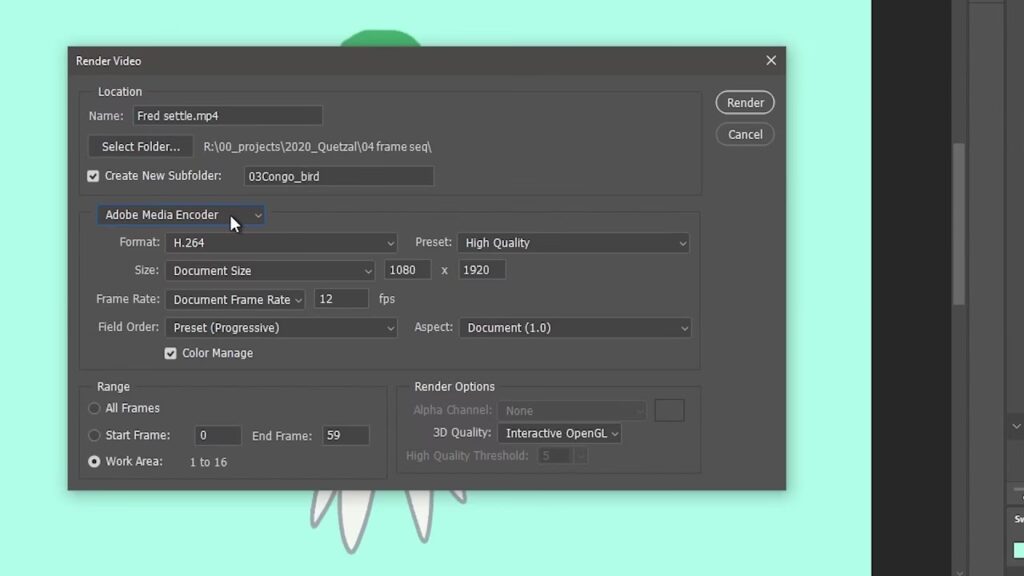Vælg den FPS, der matcher dit projekt og den platform, din video skal vises på. Det er vigtigt, at den valgte FPS stemmer overens med den billedhastighed, du planlægger at bruge, når du samler billedsekvensen til en video i redigeringssoftware.