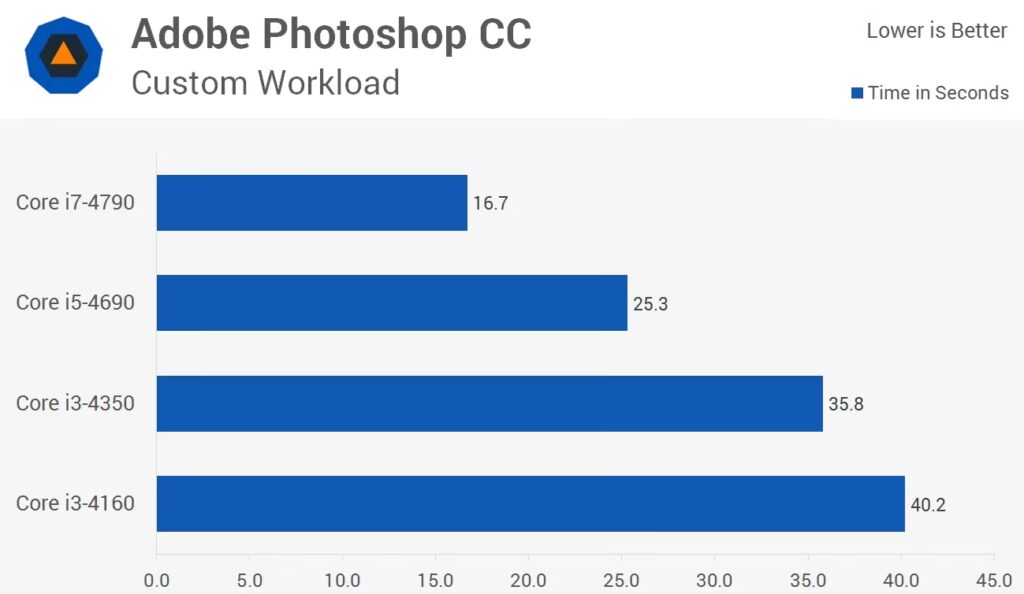 Forskellen mellem en i5 og en i7 kan være ret stor, især i de scenarier, hvor Photoshop kan udnytte de ekstra kerner og tråde fuldt ud. Tidsbesparelsen alene kan retfærdiggøre den højere pris for professionelle, for hvem tid er penge.
