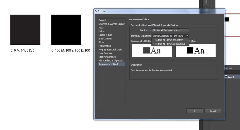 Heldigvis er det relativt ligetil at rette 'rich black' til 100% K i Illustrator: