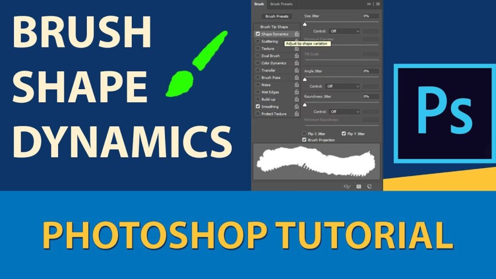 How do you change the brush shape dynamics in Photoshop?