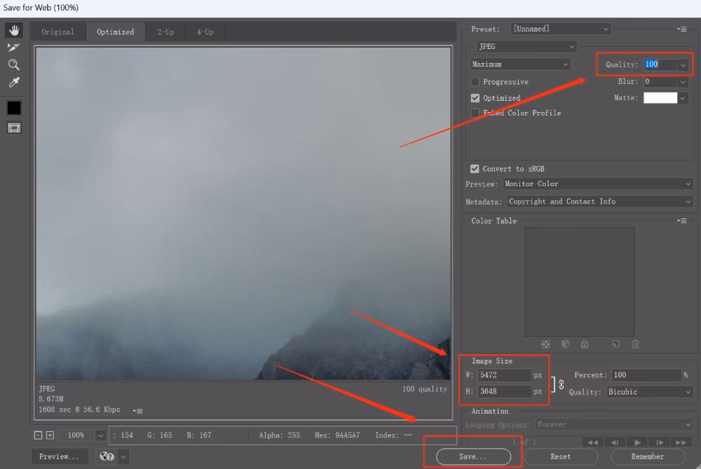 - Sørg for 'Optimeret' er markeret for yderligere komprimering.
