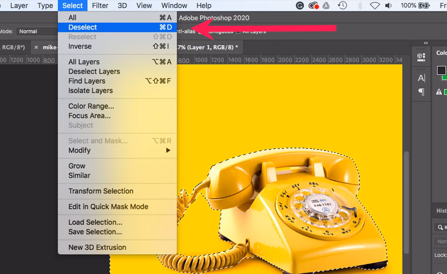 - I de fleste programmer kan du simpelthen vælge "Fravælg" (Deselect) fra menuen (ofte under "Vælg" eller "Selection"). Den mest almindelige genvejstast for at fjerne en markering er typisk Ctrl+D (Windows) eller Cmd+D (Mac).