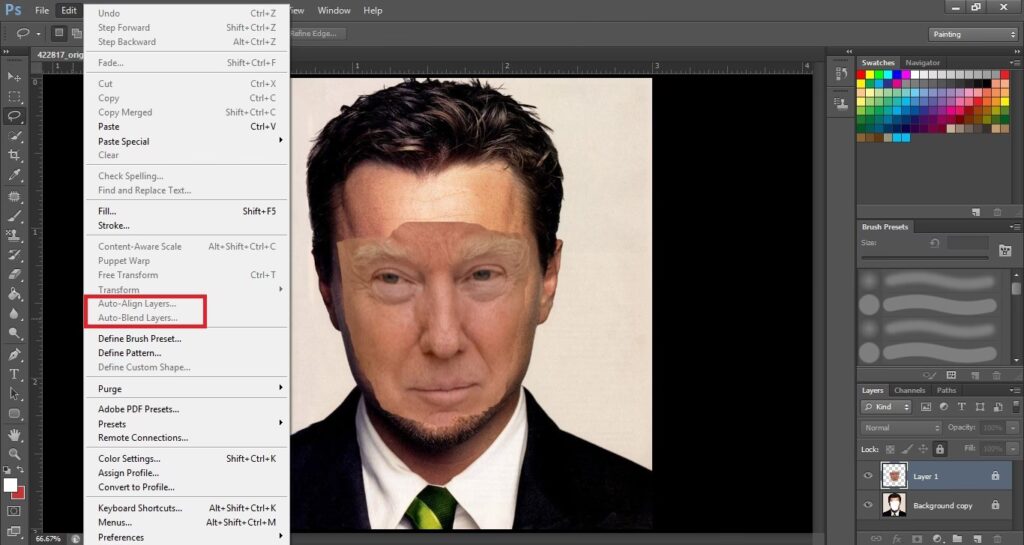 I Photoshop finder du blandingstilstandene i en rullemenu øverst til venstre i lagpanelet. - Findes der en genvej til at skifte blandingstilstande?