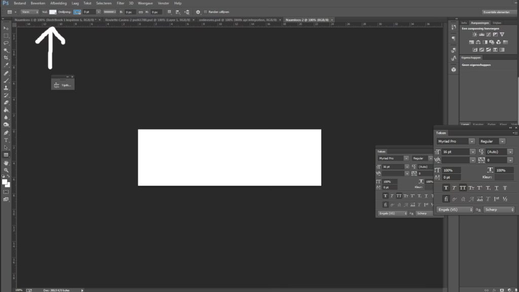 - Kig på Dokumentfanen: Hvad står der efter filnavnet? Står der "Quick Mask/8", "Blå/8" (eller en anden kanal), "Gråtoner/8" eller "Indekseret Farve/8"? Eller står der "RGB/8" (eller CMYK/8)?