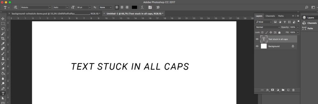Hvordan ændrer jeg tekst til små bogstaver i Photoshop?