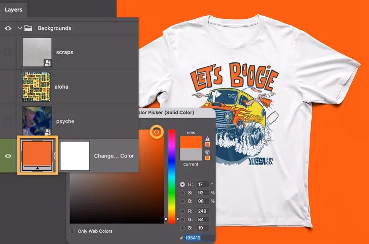 Selvfølgelig er der situationer, hvor Photoshop kan indgå i processen. Hvis dit T-shirt design indeholder fotografiske elementer eller komplekse, malede teksturer, kan du oprette eller redigere disse dele i Photoshop. Men selv i disse tilfælde er det ofte bedst at integrere Photoshop-elementerne i et Illustrator-dokument for at tilføje tekst og andre grafiske elementer, der forbliver skalerbare.